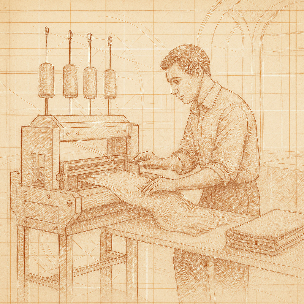 The raw cotton is cleaned, combed, and spun into smooth yarns,