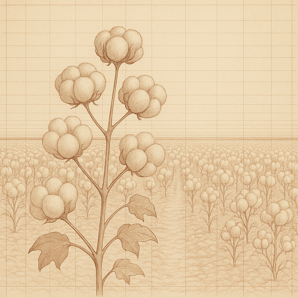Under the Mediterranean sun, cotton plants thrive, producing fine, resilient fibers harvested by hand at their natural peak.