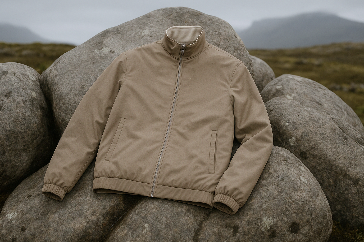 A reversible bomber composed for balance between precision and ease. The silhouette is structured yet fluid, defined by a high collar, double-ended zip, and tailored proportion. Each side offers a distinct tone — refined versatility in motion.